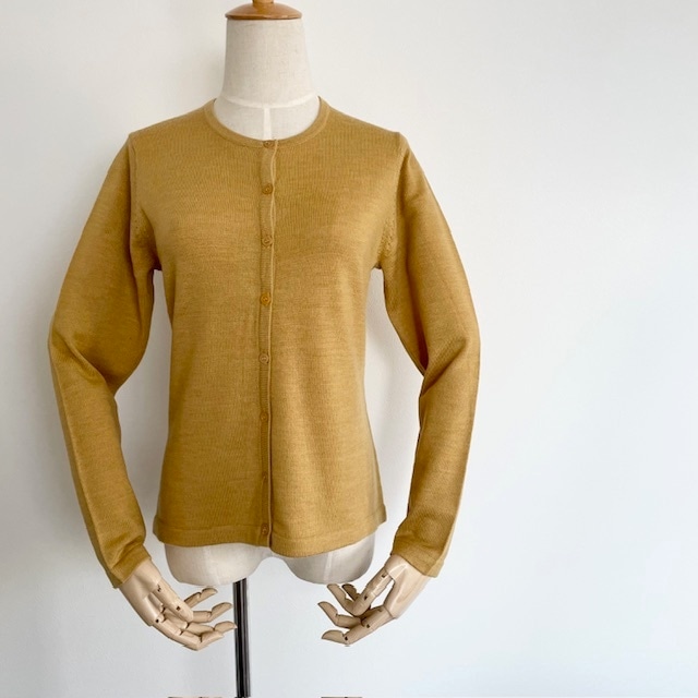 イタリアンメリノウール クルーネックカーディガン マスタードイエロー