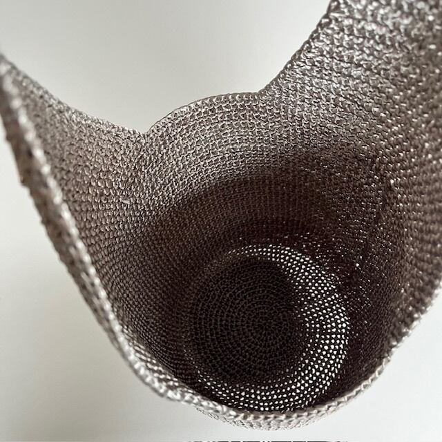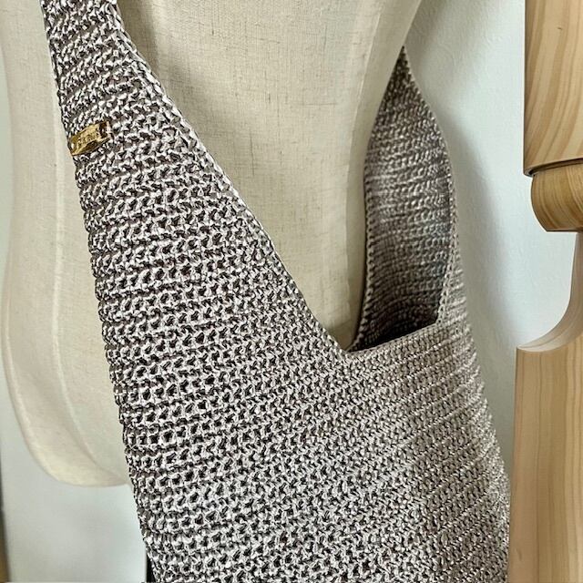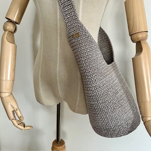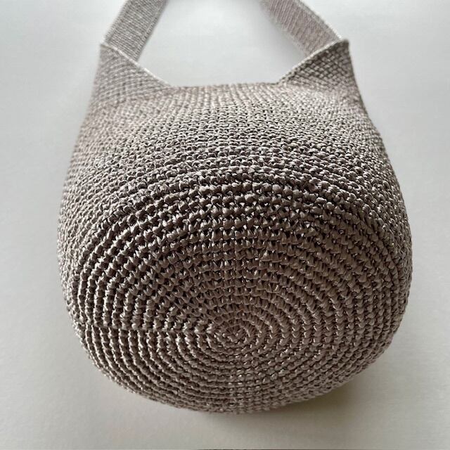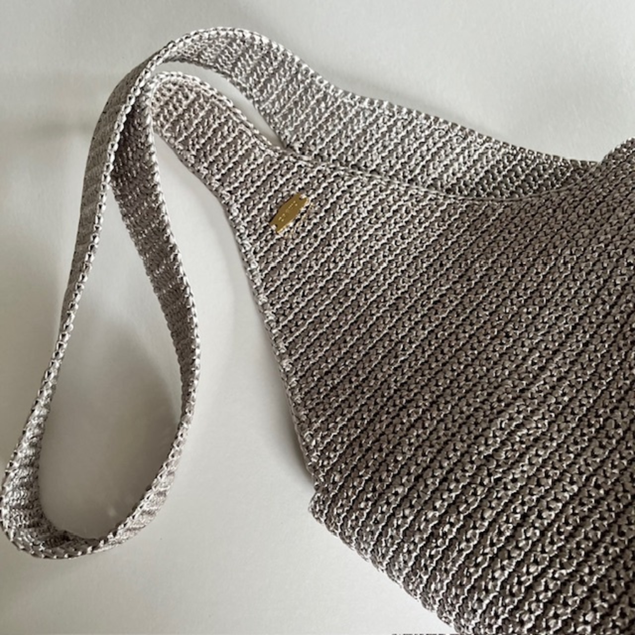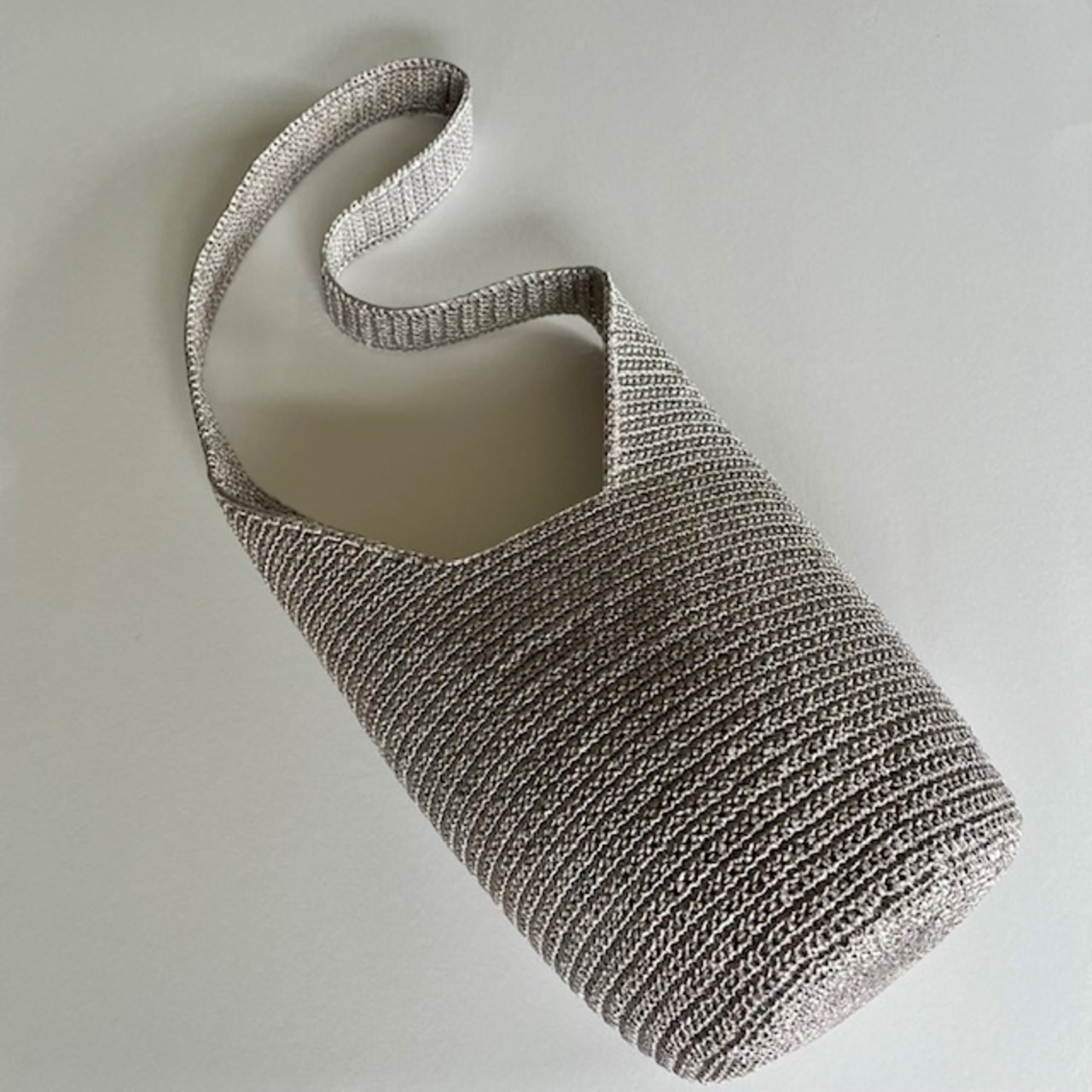 短時間で大量には作れないけれど、手編みならではの「温もり」「優しさ」を感じて使ってくれる人を思って、心をこめて編んだニットバッグです。