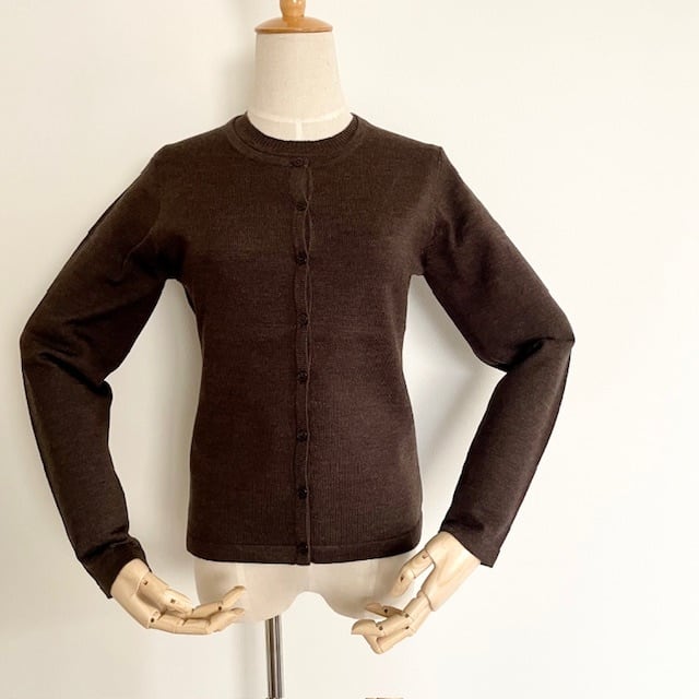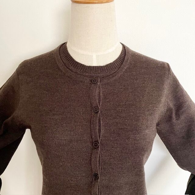 クルーネッククニットとベーシックなカーディガンのアンサンブルニット。