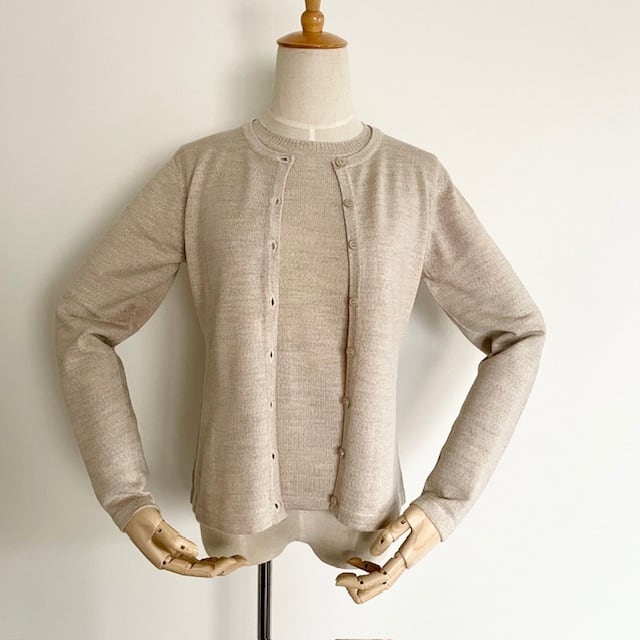 クルーネッククニットとベーシックなカーディガンのアンサンブルニット。