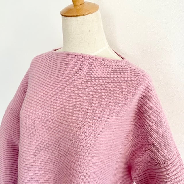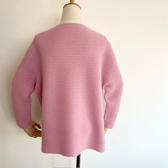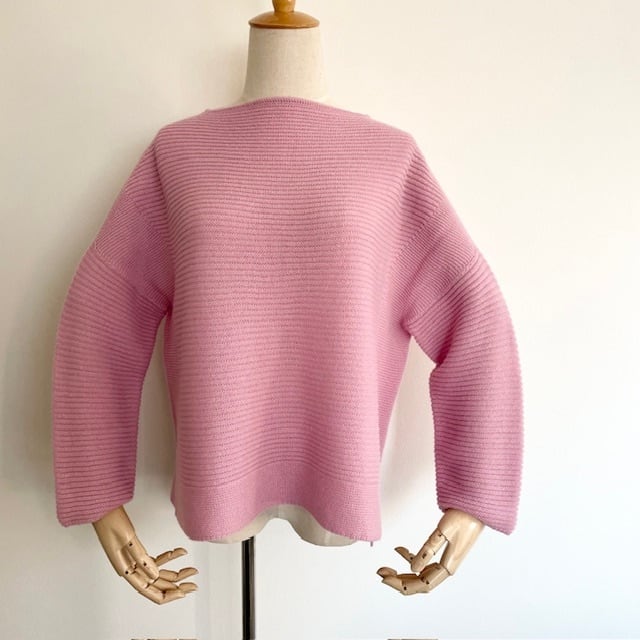 両脇を編柄で切り替えたデザインのローゲージニットです。