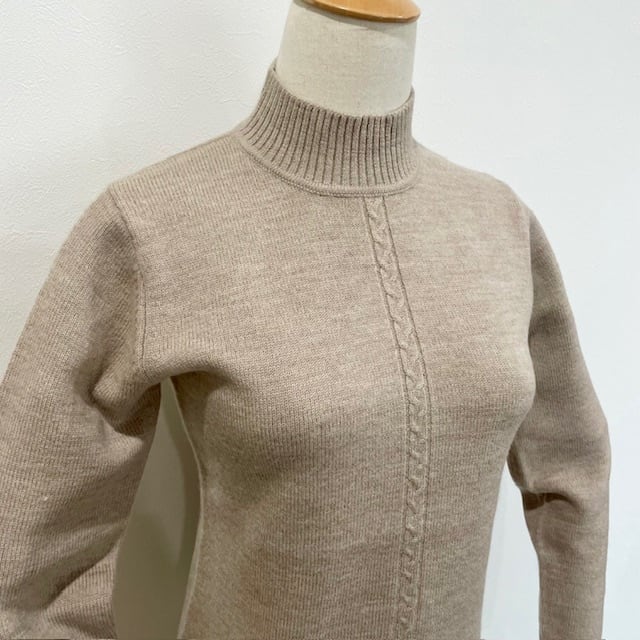 パウダーウール センターケーブルハイネックセーター ベージュ