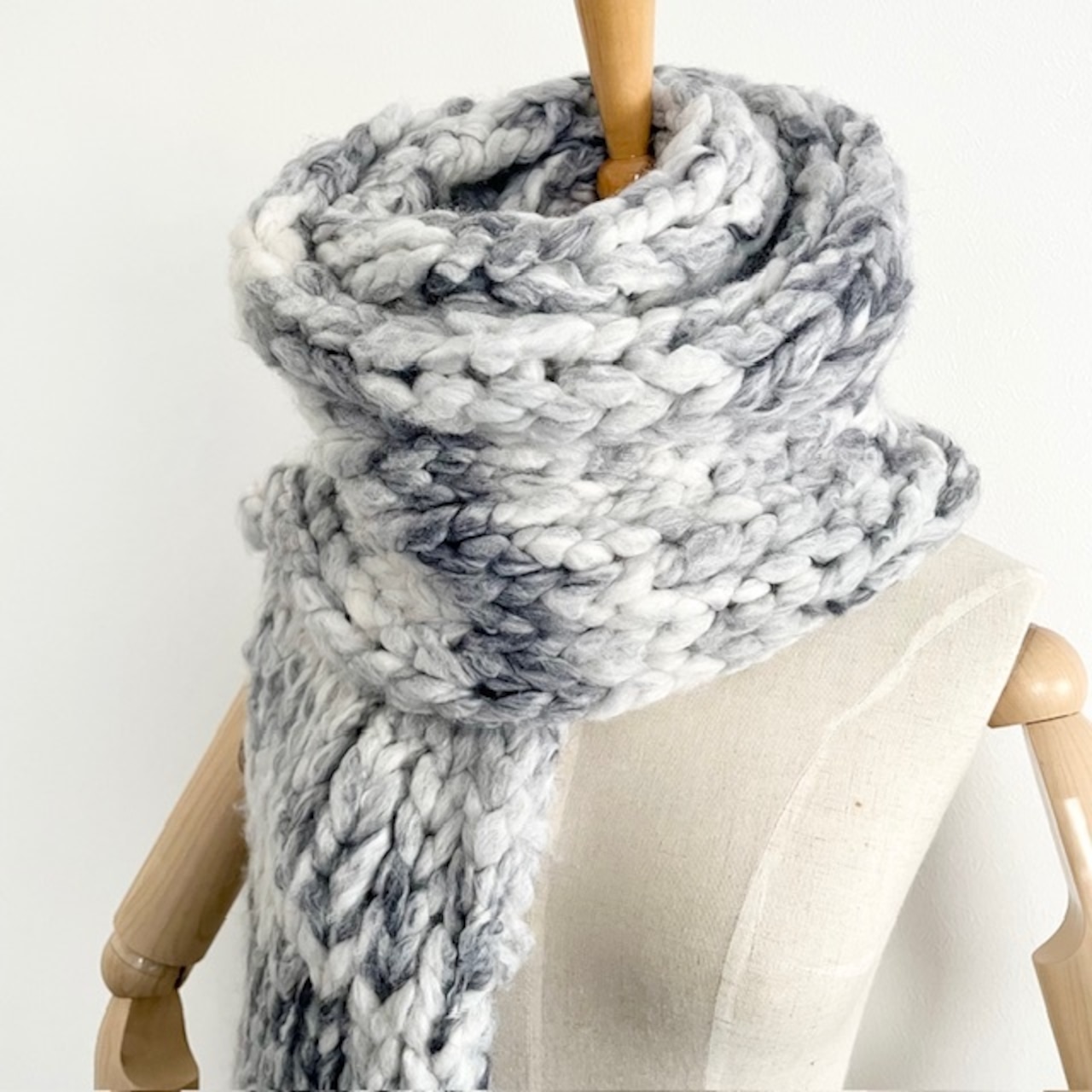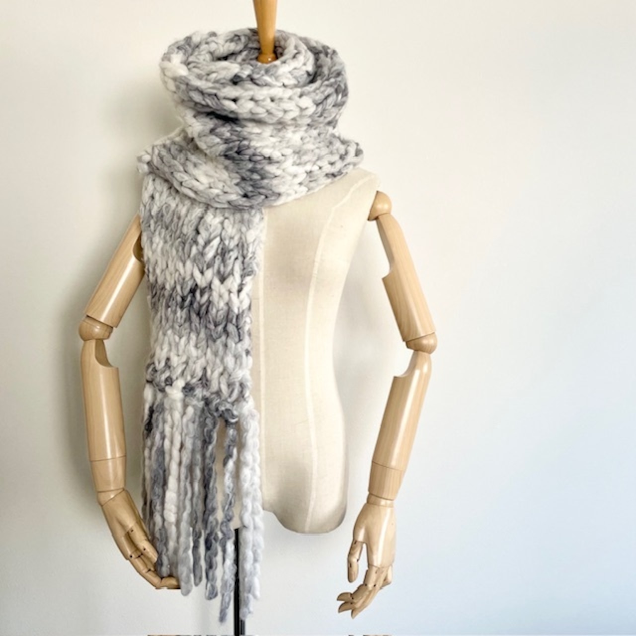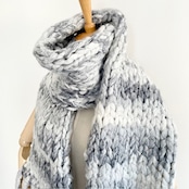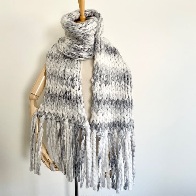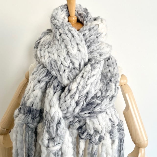 超超極太のファンシーヤーンで編みあげたジャンボマフラー。