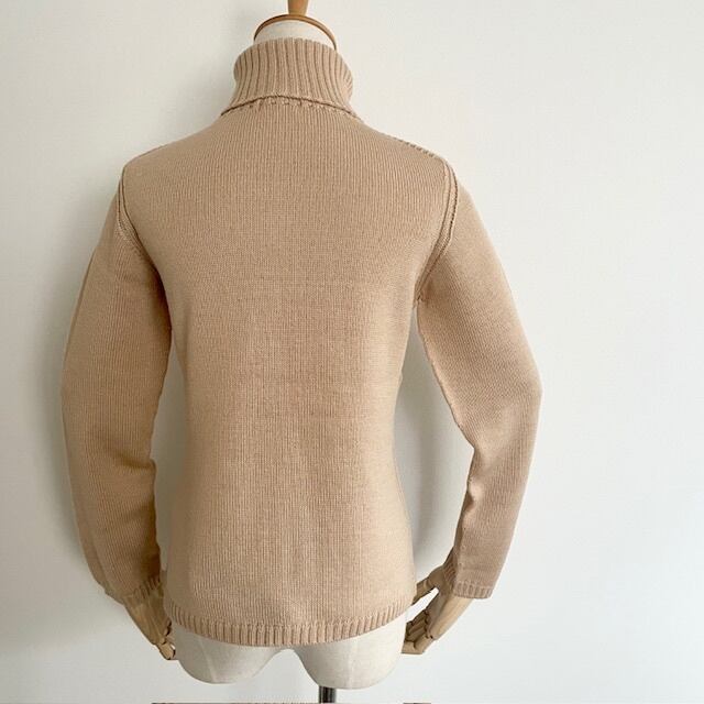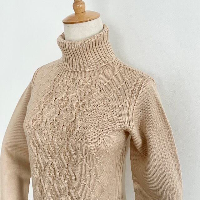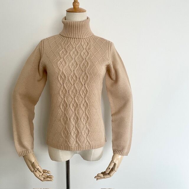 ホールガーメント アラン柄タートルネックセーター サンドベージュ