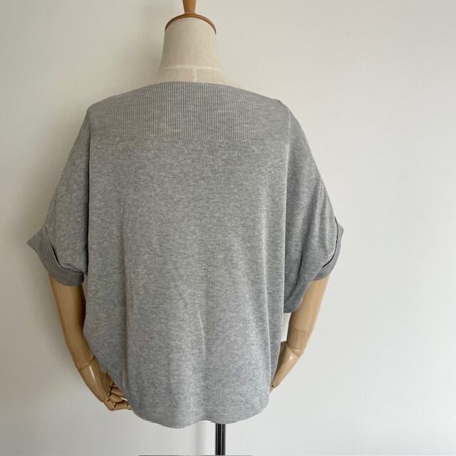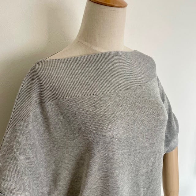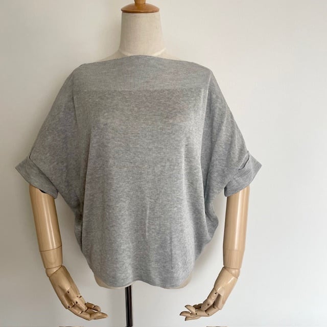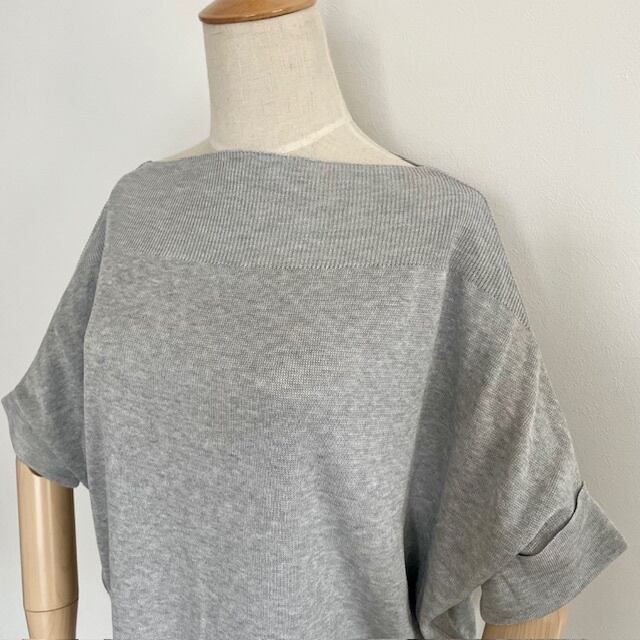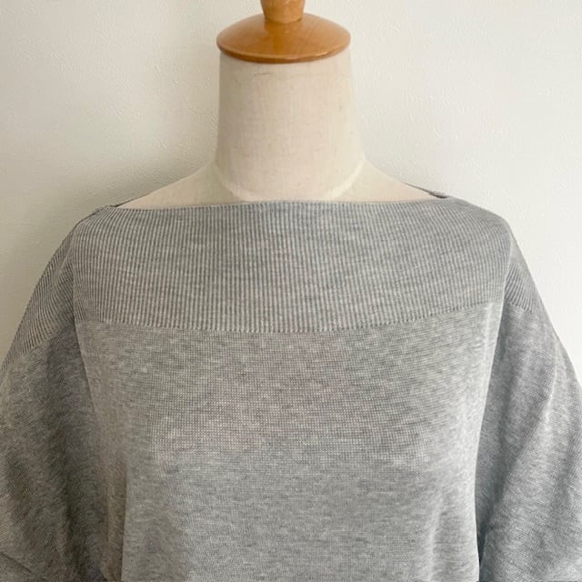 ビックシルエット ドルマンスリーブニットボートネックセーター ライトグレー