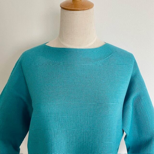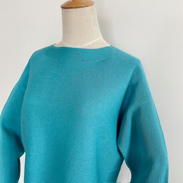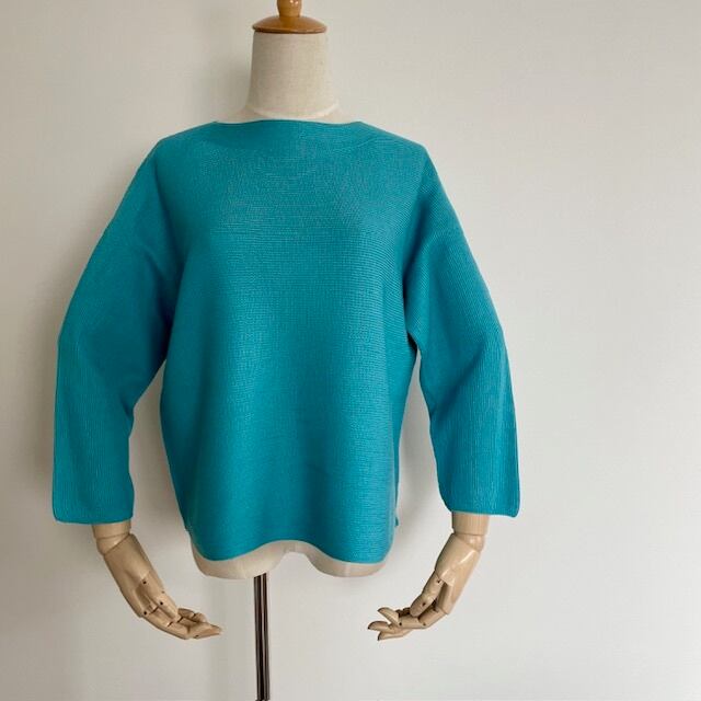 清涼感 ビッグシルエット ホールガーメント ボートネックセーター ターコイズブルー
