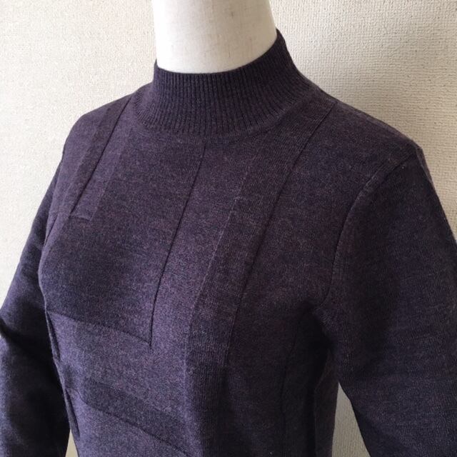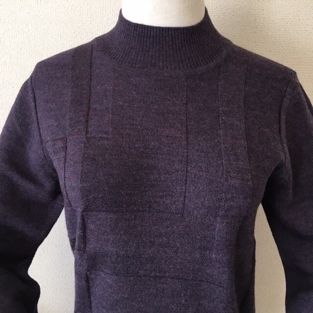 パウダーウール 幾何学柄ハイネックセーター DPパープル