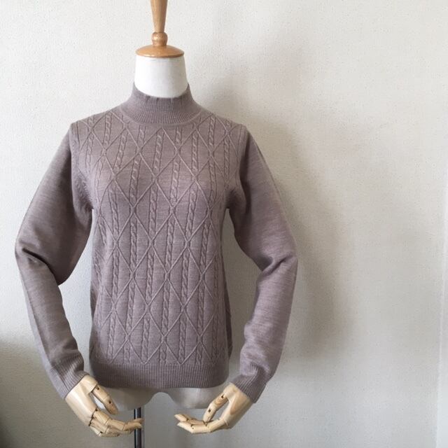 パウダーウール ダイヤ柄ケーブルハイネックセーター ベージュ