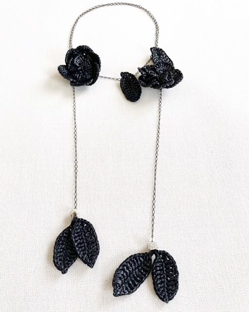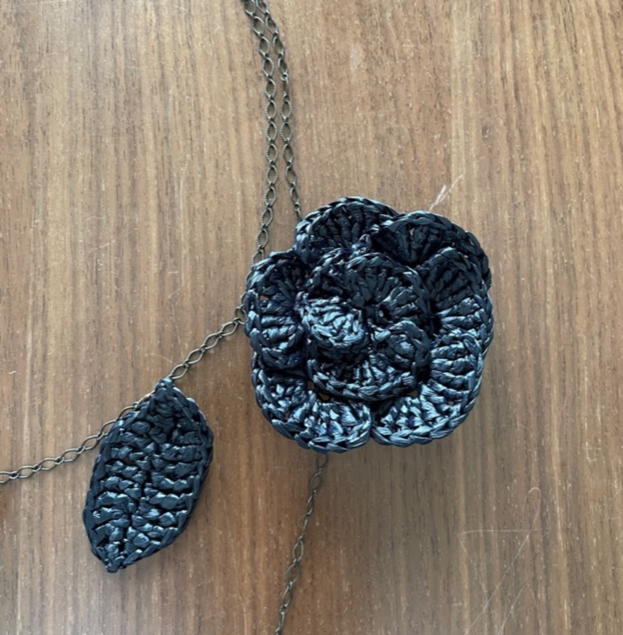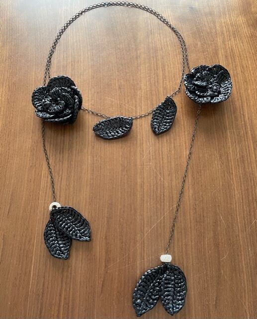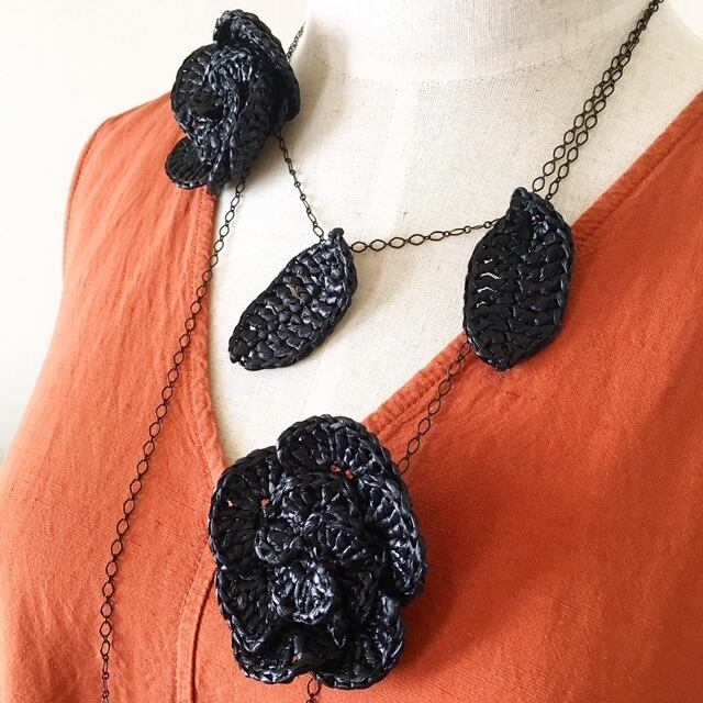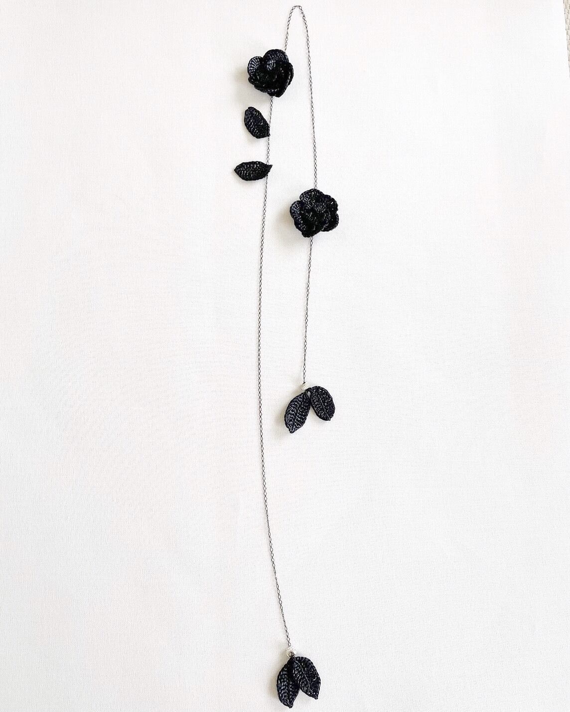 かぎ針編みの花柄モチーフを取り付けたラリエット。