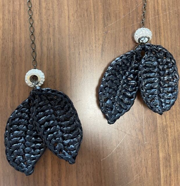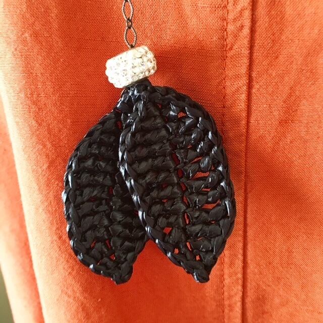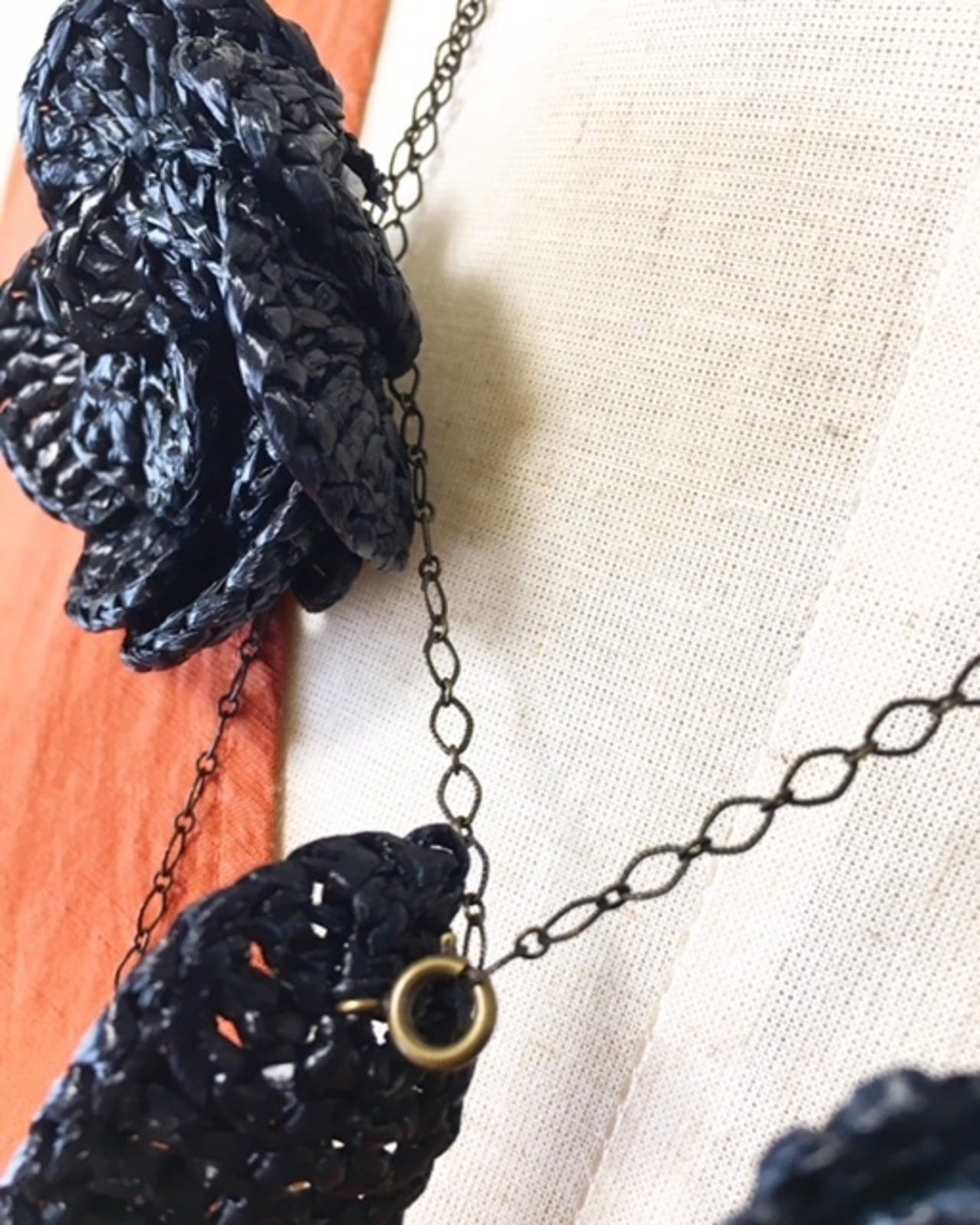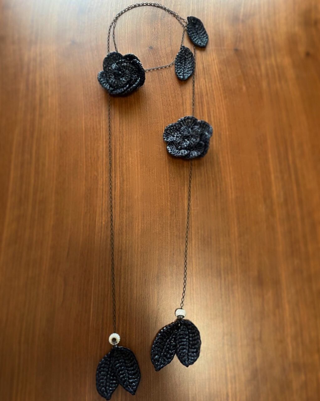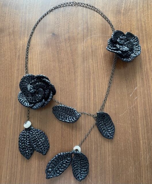 かぎ針編みの花柄モチーフを取り付けたラリエット。