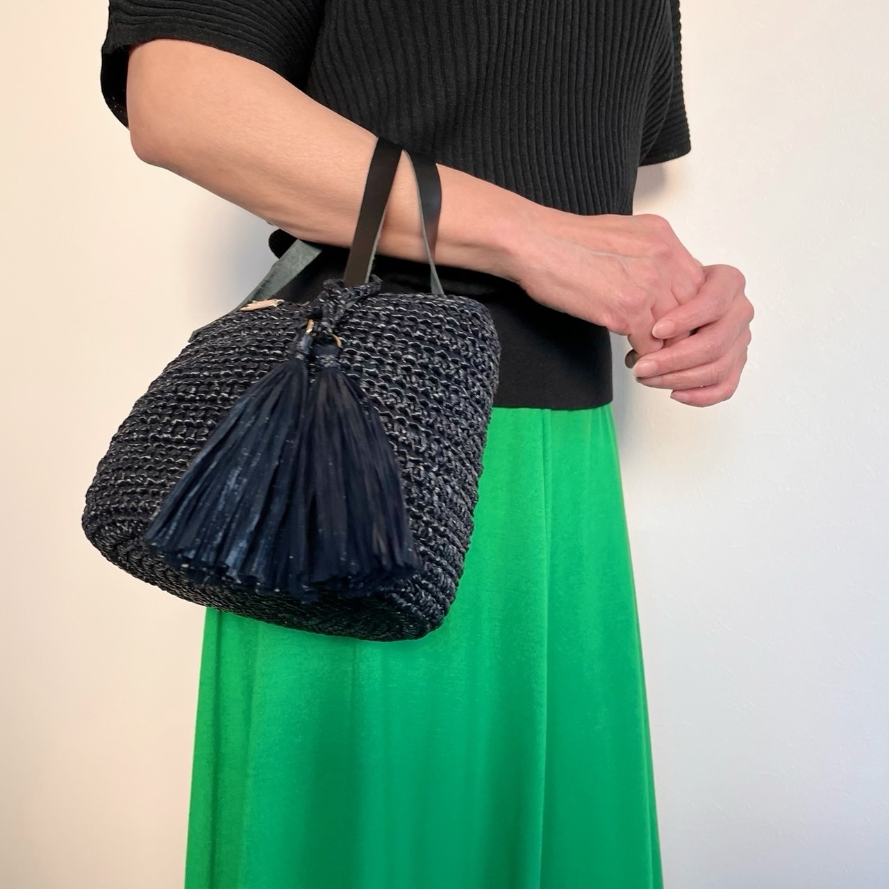 短時間で大量には作れないけれど、手編みならではの「温もり」「優しさ」を感じて、使ってくれる人を思って、心をこめて編んだバッグです。
