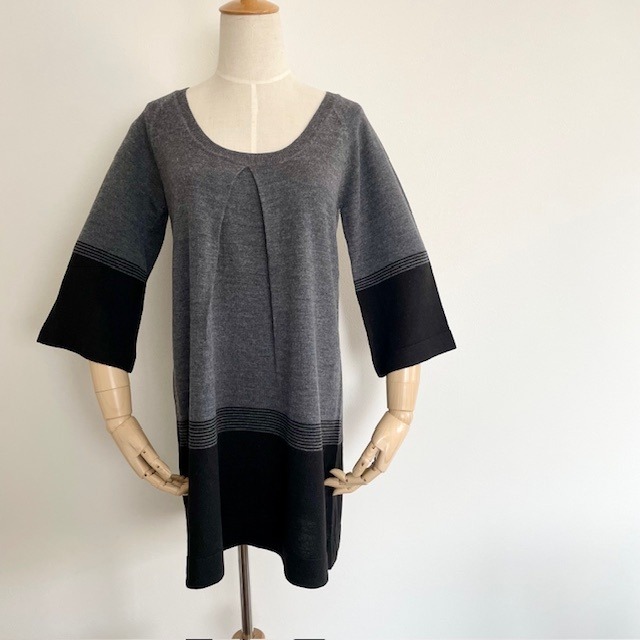 配色チュニックセーター チャコールグレー